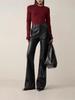 Pantalones de Cuero Genuino Hn5502 Primavera Nuevo Mate Encerado Ligero Semi-Curtido Vegetal Piel de Oveja Pierna Estrecha Ancha Adelgazantes Cintura Alta Pantalones Largos para Mujer