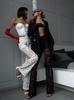Venta Directa de Fabricante en Stock Pantalones de Vestir Negros con Cadena de Cuentas en la Cintura con un Sentido del Diseño para Dropshipping