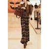 23763 Da Ai Mei Yuan 2025 Invierno Nuevo Estilo Chaqueta Corta de Cuero con Cuello Vuelto Pantalones de Moda a Cuadros de Cintura Alta Tendencia para Mujer