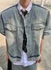 Chaqueta de mezclilla de manga corta con hombreras de diseño de destrucción moderno de estilo retro americano para hombre y mujer, mismo estilo, camisa de manga corta a la moda
