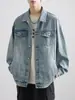Chaqueta vaquera estilo americano punk de industria pesada con solapa y costuras antiguas de estilo vintage, chaqueta informal holgada sencilla, parte superior vaquera