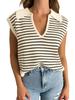 Procesamiento y Personalización de Exportación Transfronteriza Europea y Americana Primavera y Verano Cuello en V Chaleco Suéter Delgado Amazon Rayas en Contraste Chaleco Tejido