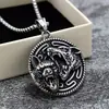 Colgante Nórdico Retro de Acero Inoxidable para Hombre Doble Cara Cabeza de Lobo Símbolo de Triángulo Colgante Medalla