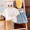 24053 Nuevo Conjunto Lindo de Verano para Niñas Top de Manga Corta con Estampado de Dibujos Animados y Jeans de Oso Conjunto de Dos Piezas