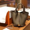 Bolso cubo picotin de línea de cera hecho a mano de alta gama Cesta de verduras Cuero vacuno TC Bolso cubo Patrón lichi Gris elefante Bolso de mano para mujer