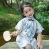 Vestido Niñas Verano 2025 Nuevo Vestido Suelto con Estampado de Hoja de Bambú Estilo Chino Vestido Cheongsam de Manga Corta
