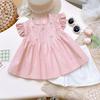 Vestido de niña Verano Vestido de princesa de dos piezas falsas para niños pequeños y medianos Verano Vestido de verano de manga corta para bebé
