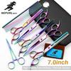 Tijeras de belleza para mascotas de 7.0 pulgadas de color galvanizado con 5 mangos, tijera recta, tijera curva, juego de tijeras, dientes de hueso de pescado, dientes densos, peine de púas juntas