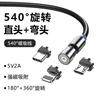 Cable de carga magnético giratorio popular de 540 grados, cable de datos de codo 3 en 1 de uno a tres, cable para teléfono móvil con rotación magnética