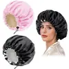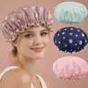 Touca de Banho Ajustável com Cordão Transfronteiriço para Beleza Feminina e Cuidados com o Cabelo Banho de Óleo Seda Macia Camada Dupla Touca de Noite Alargada Touca de Banho