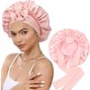 Gorro de ducha con cordón ajustable transfronterizo para belleza y cuidado del cabello de mujeres, baño de aceite, seda suave, doble capa, gorro de dormir agrandado, gorro de ducha