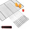 Paquete de 10 brochetas de barbacoa retorcidas de acero inoxidable, juego de agujas para barbacoa, palitos de barbacoa y tela de nailon.