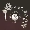Reloj de pared creativo de cristal para bricolaje Reloj de ángel y mariposa Pegatinas de pared acrílicas Reloj de pared creativo para bricolaje Reloj de pared
