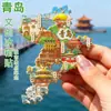Imán Metálico en Relieve para Refrigerador de Mapa Cultural y Creativo de Qingdao, Muelle, Plaza del Cuatro de Mayo, Souvenir Turístico, Regalo para Zona Escénica