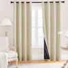 Crema Lino Doble Cara Moderno Color Puro Algodón y Lino Cortinas Acabadas Sala de Estar y Dormitorio Aislamiento Insonorización Tela para Cortina Blackout