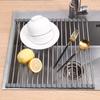 Estante de almacenamiento para fregadero de acero inoxidable para el hogar, multifuncional, plegable, de una sola capa