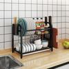 Estante de almacenamiento de hierro forjado para cocina personalizado de gran capacidad para cuencos y palillos, escurridor doméstico para platos y cuencos con bandeja para agua
