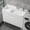 Combinación de Gabinete de Lavandería de Madera Maciza, Lavabo de Cerámica para Lavandería del Hogar, Mesa de Lavado Integrada, Tina de Lavado para Balcón con Tabla de Lavar