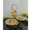 Venta Directa de Fábrica Plato Giratorio de Vidrio para Frutas Plato para Pasteles Tridimensional Plato de Vidrio Dorado de Hierro Doble Capa para Frutas