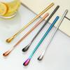 Cuchara de barra de cola plana, cuchara de barra larga de acero inoxidable, palillo para mezclar cócteles, cuchara para mezclar café, leche, té, cuchara en espiral