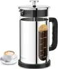 Cafetera de Prensa Francesa de Acero Inoxidable 304 con 4 Filtros, Resistente al Calor Duradera, Fácil de Limpiar, Prensa de Café de Vidrio de Borosilicato, Tetera 100% Libre de BPA, Plata