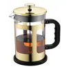 Cafetera de Prensa Francesa Acero Inoxidable 304 con 4 Filtros, Resistente al Calor Duradera, Fácil de Limpiar, Cafetera de Prensa de Vidrio de Borosilicato, Tetera 100% Libre de BPA, Rectangular, Dorado