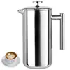 Cafetera de Prensa Francesa de Acero Inoxidable 304 con 4 Filtros, Resistente al Calor Duradera, Fácil de Limpiar, Prensa de Café de Vidrio de Borosilicato, Tetera 100% Libre de BPA,A,Plata