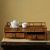 Cobertizo de té de escritorio de bambú Meru, disco de almacenamiento para accesorios de ceremonia del té con cajón, mesa de té pequeña, estante de exhibición para juegos de té, adornos para mesa de té