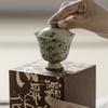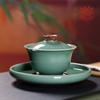 Tazón con tapa de celadón de Longquan de tres piezas para el hogar, hecho a mano, de alta gama, juego de té de cerámica para kung fu, tazón de té grande para brindar