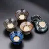 Cuenco Sancai de bambú azul pintado a mano, cuenco de té de cerámica fino hecho a mano con base, juego de té Kung Fu para el hogar, tetera