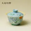 Ruyin Guisong Flor Pintada a Mano Arroyo de Flores Er Cai Flor Boca Gaiwan Alta Apariencia Mariposa Boca Ancha Infusor de Té Pequeño Fresco Infusor de Té