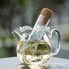 Olla de Flor de Vidrio con Boca de Encaje Tubo de Ensayo Cafetera Tapa de Madera Filtro de Té de Alto Borosilicato Filtro de Cafetera Juego de Té