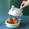 Horno de microondas calentando vaporera de huevos forma de gallina vaporera de huevos vaporizado cuatro huevos hervidor de huevos vaporera vaporera vaporera conveniente y rápido