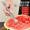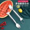 Artefacto de corte de sandía de doble cabezal multiusos de acero inoxidable, divisor de fruta, cubos de corte de sandía, tenedor para excavar pulpa de fruta