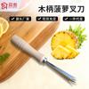 Cuchillo Tenedor para Piña con Mango de Madera, Cuchillo para Piña de Acero Inoxidable, Quitador de Ojos, Pelador, Espátula para Piña