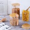 Frasco de vidrio de borosilicato de alta calidad para almacenamiento en la cocina, frasco de té con tapa de bambú, frasco de vidrio transparente sellado para aperitivos de grano grueso.