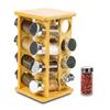 Estante de exhibición giratorio de condimentos de bambú, estante de almacenamiento de especias, botella de condimento de 16 bits con vidrio