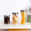 Frasco de vidrio de borosilicato de alta calidad para almacenamiento en la cocina, frasco de té con tapa de bambú, frasco de vidrio transparente sellado para aperitivos de grano grueso.