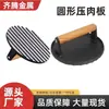 Prensa de Carne de Hierro Fundido Manual Antiadherente Sin Recubrimiento Tabla Prensadora de Carne para Hamburguesas Cuadrada Redonda Barra con Mango de Haya Placa de Hierro para Barbacoa Calamar
