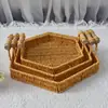 Cesta Drenadora de Verduras tipo Ratán de Fábrica Plato de Frutas Hexagonal con Mango de Madera Cesta para Colocar Snacks en la Mesa de Café del Hogar