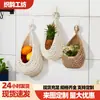 Cesta colgante de estilo bohemio, Red de almacenamiento tejida a mano con forma de nido de pájaro, Artefacto de almacenamiento transpirable para frutas y verduras con forma de gota de agua