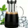Cafetera y Tetera de Infusión en Frío, Jarra de Vidrio y Filtro de Acero Inoxidable, Cafetera y Tetera para Café Helado Fácil de Limpiar con Tapa Hermética y Asa Grande, Transparente,C