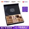 Cuchillo, tenedor y cuchara de acero inoxidable, 16 piezas, regalo, caja de madera dorada, traje de hotel serie 1010 bañado en oro, vajilla de estilo occidental