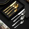 Juego de cuatro piezas de cuchillo, tenedor y cuchara para carne de acero inoxidable dorado para el hogar, vajilla de acero inoxidable con mango cuadrado para restaurante, juego de cuchillo, tenedor y cuchara