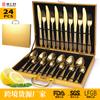 Juego de cuchillos, tenedores y cucharas de 24 piezas para suministro transfronterizo, acero inoxidable portugués mate, dorado, juego de cuchillos, tenedores y cucharas para carne de estilo occidental