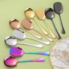 Fabricantes de vajilla de acero inoxidable 304 transfronterizos, cuchara, cuchara creativa, cuchara redonda, cuchara de sopa gruesa de alto valor de color.