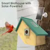 Casa de pájaros de madera Casa de pájaros colgante Adorno colgante para patio Caja de cría Casa de pájaros solar Madera maciza Alimentador de pájaros de jardín