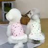 Primavera Verano Campo Flores Pequeñas Ropa para Perro Falda de Malla Tejida con Agujero para Correa Teddy Gato Ropa de Dos Patas Ropa para Mascotas