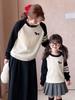 Ropa Familiar Otoño e Invierno Estilo Preppy Tb Tejido de Lana de Contraste Suéter de Cuello Redondo Punto de Cachemira de Manga Larga Bordado de Perro