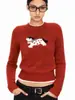 JOMI STUDIOEdición Limitada del Año del CaballoSuéter de Lana con Bordado Jacquard de Caballo Clásico Divertido Pequeño Hombro Normal Cuello Redondo